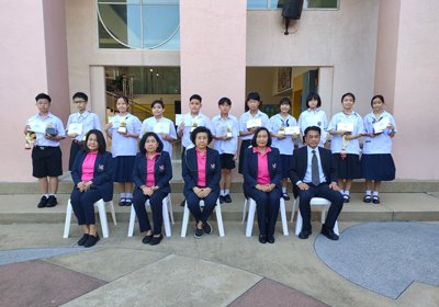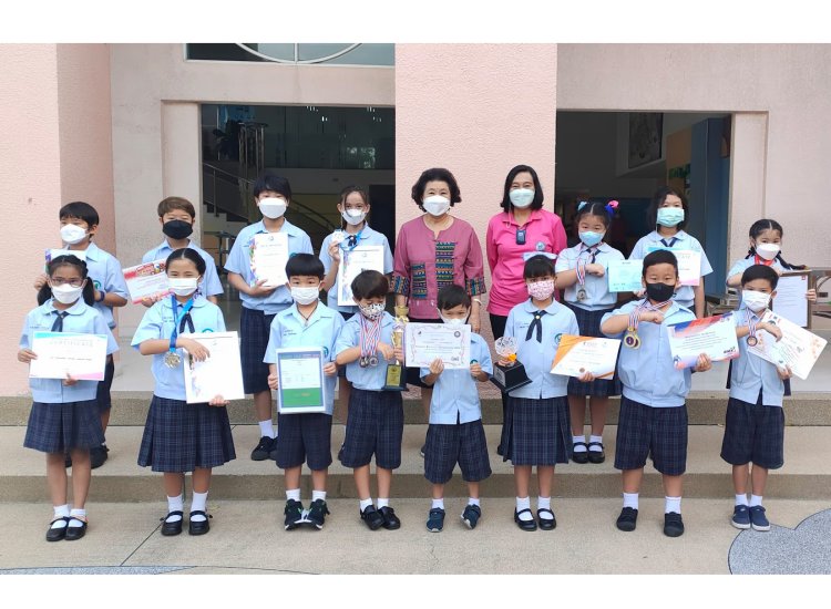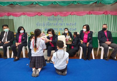 ผู้อำนวยการมอบรางวัลให้กับนักเรียนที่ได้รับรางวัลจากการแข่งขันวิชาการและกีฬาประเภทต่างๆ ปีการศึกษา 2564