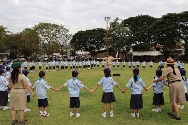 พิธีทบทวนคำปฏิญาณและเดินสวนสนามลูกเสือ-เนตรนารี