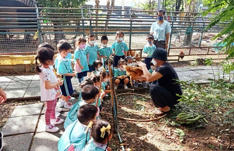 ทัศนศึกษาระดับอนุบาล 1 ที่ฮิฟอินทรีฟาร์มวิลล์พอเพียง ชมสวน ดูไก่